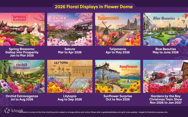 • Flower Dome: Discover rare flora from across the globe, spanning the Mediterranean, South African savannahs, and arid desert landscapes.